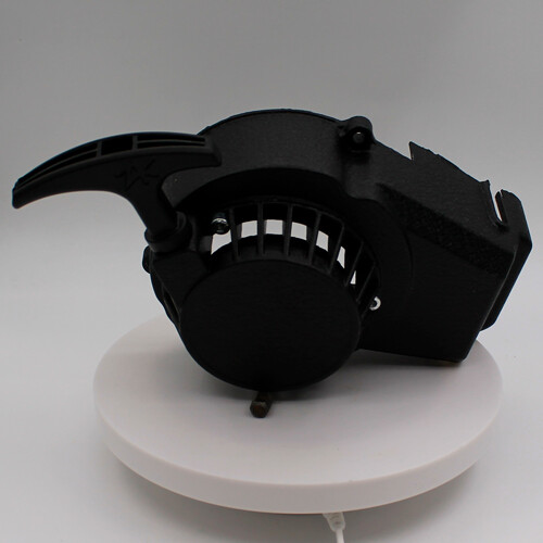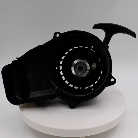 Ручной стартер для детского квадроцикла старого образца. Материал корпуса - алюминий. Внутри - металлический вытягивающийся храповик. Подходит для двигателя 49 кубов 2Т с крыльчаткой охлаждения старого образца.
