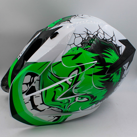 Универсальный детский мотошлем AHP HULK. Изготовлен из качественного материала. Яркая расцветка со стильным принтом. Размеры: S (52-55) - для головы окружностью 52-55 см (в среднем для мальчиков 4-16 лет, для девочек 4-16 лет).